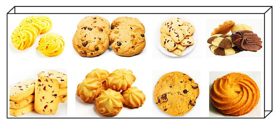 Ø Jest to stosunkowo zaawansowana technologia i wyposażenie o wysokim stopniu automatyzacji, stabilnej wydajności i sterowaniu PLC.Materiał głównych części kontaktujących się z ciasteczkami jest przyjęty z SS304, który zapewnia bezpieczeństwo żywności i higienę podczas produkcji- Nie, nie.
